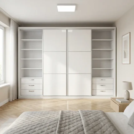 Unutrašnjost ormara pažljivo je organizovana kako bi pružila maksimalnu iskoristivost prostora, uz kombinaciju polica i prostora za vješanje garderobe. Kvalitetna izrada i čvrsti materijali garantuju dugotrajnost i stabilnost u svakodnevnoj upotrebi.